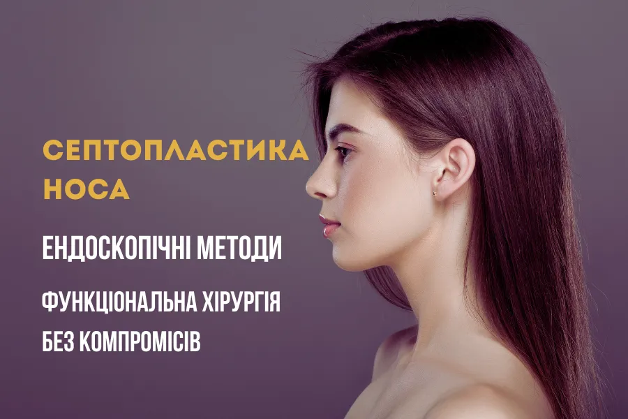 Септопластика – це операція з корекції форми носової перегородки, яка відновлює нормальний прохід для повітря. Вона не змінює зовнішній вигляд носа, але за бажанням пацієнта можна поєднати корекцію перегородки з ринопластикою.